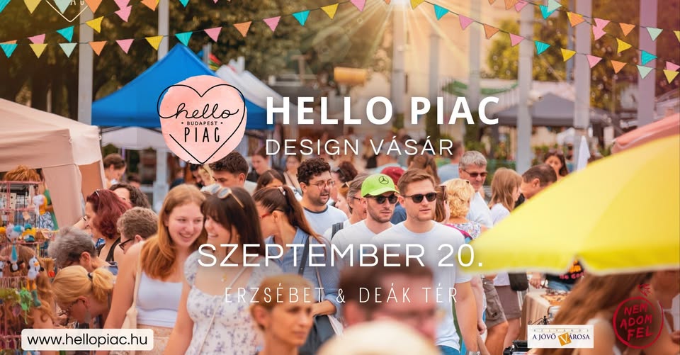 Gyere el Te is Budapest legmenőbb design vásárára az Erzsébet térre, és fedezd fel a hazai tervezők és designerek által készített legegyedibb és legkülönlegesebb táskákat, ruhákat, ékszereket, divat kiegészítőket, DIY és vintage stílusú lakásdekorációs terméket, kézműves gasztro készítményeket, természetes alapanyagokból készült kozmetikumokat, egyedi baba-mama kiegészítőket és játékokat, zero waste és környezetbarát alternatívákat… igazi minőségi kincseket!Mindenből a LEGJOBB, egy helyen, a HELLO PIAC Design Vásáron!A belépés INGYENES! A vásárra KUTYUSOKATis örömmel várunk!...A HELLO PIAC-on szeretnénk előterébe helyezi az emberi kapcsolatok megerősítését, a magyar termelők és kisvállalkozók minőségi termékeit, a környezettudatos és fenntarthatóbb mindennapi élet kialakítását elősegítő, környezetbarát termékeket, a tudatos vásárlás fontosságát és kiemelt célunk a fogyatékossággal élő emberek által készített magas színvonalú termékek népszerűsítése. Szeretnénk beintegrálni kínálatukat a sikeres piacok hasonló termékei közé, mert ugyanolyan értéket és minőséget képviselnek, de mégsem kapják meg azt a teret és figyelmet, amelyre méltóak lennének....